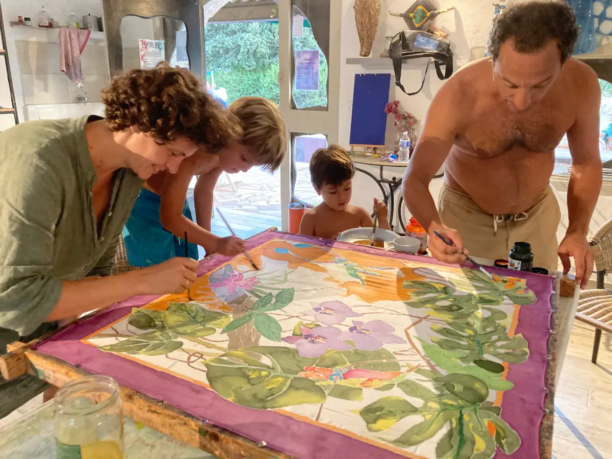 Venez explorer l’art délicat de la peinture sur soie lors de notre atelier créatif. Vous apprendrez à utiliser des pigments et des techniques spéciales pour créer des motifs vibrants et des dégradés sublimes sur la soie. Cet atelier est l’occasion idéale de découvrir les subtilités de cette technique ancestrale, tout en laissant libre cours à votre imagination pour personnaliser vos créations.