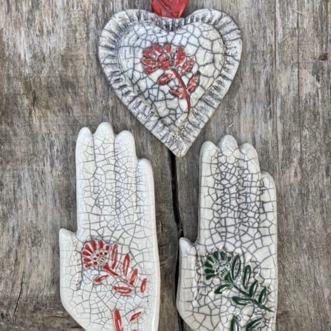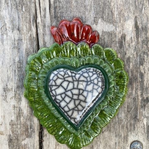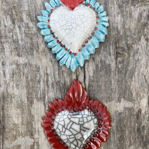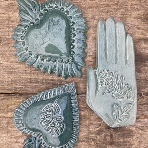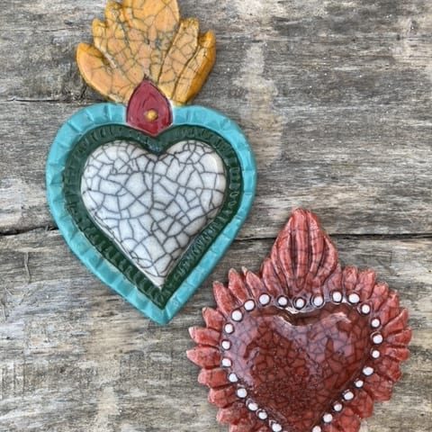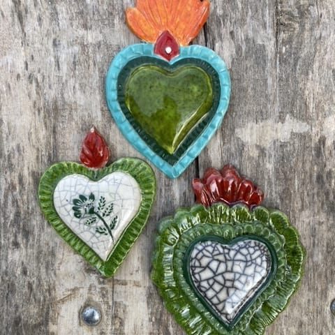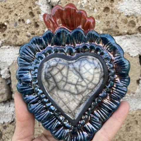 Ex voto est une expression latine, ‘ex voto suscepto’ “à la suite d’un vote”, il désigne la formule apposée sur les objets dans les sanctuaires des divinités pour obtenir la grâce, l’objet même de l’offrande est appelé ex voto et constitue dans sa diverses formes et modèles le signe d’un message, d’un acte de remerciement. Les ex-voto ont toujours existé dans toutes les religions, d’abord païennes, puis chrétiennes. Notre collection d’ex voto en céramique sont des pièces uniques réalisées selon diverses techniques, elles peuvent être des compositions personnalisées de plusieurs pièces et décorer des murs entiers.